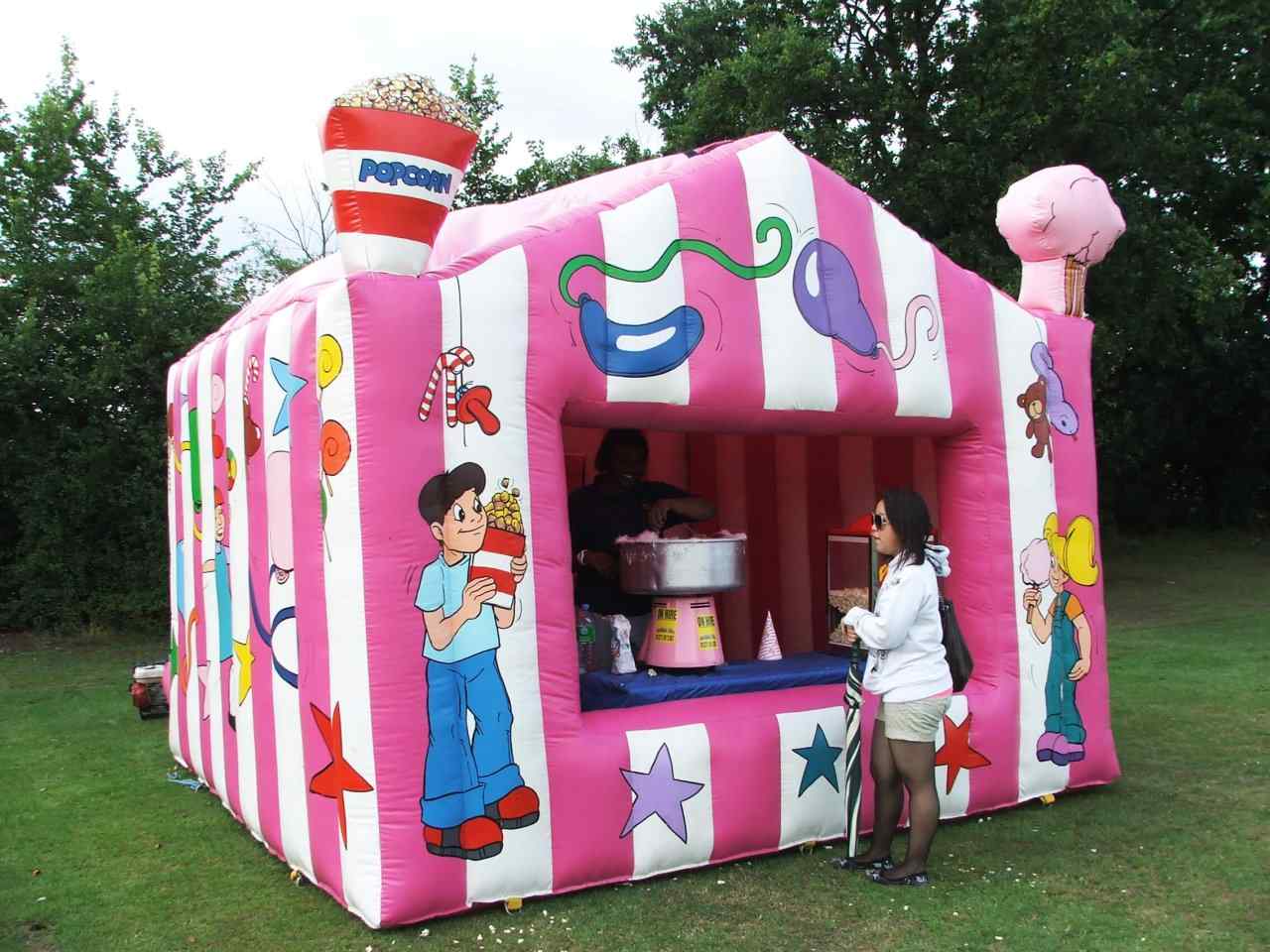 When you hire Popcorn and Candyfloss from Funtime Hire, you can be assured that it will be presented beautifully. Choose from a traditional cart, inflatable hut or fairground stall to house these favourite treats, a great choice for family fun days, school fairs, fireworks and Halloween parties, in fact any event!