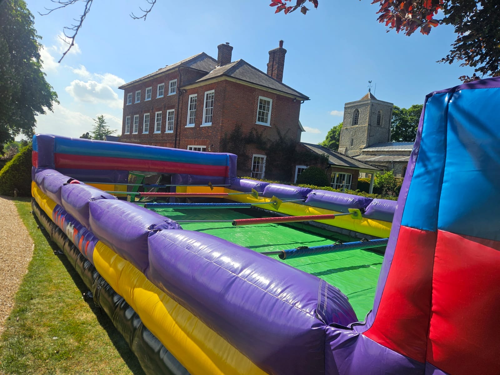 A giant version of table football, but with human players strapped to the poles at the wrists, this 5 a side game requires team players to communicate effectively with each other in order to provide an effective offense and defense - fun, energetic and competitive - it's a beautiful game!