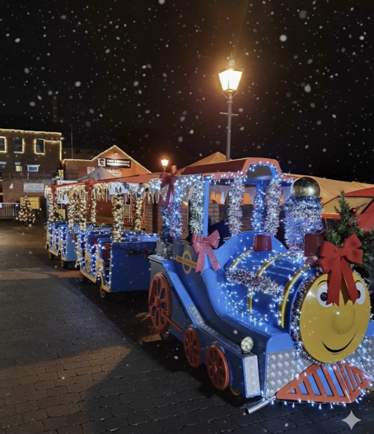 Equipped with a professional driver and guard, and offering the option of an accompanying inflatable train station and shelter, Lennie ensures a safe, enjoyable, and efficient transport solution. It's not only a practical service but also a fantastic visual attraction that becomes even more spectacular in its Christmas attire.