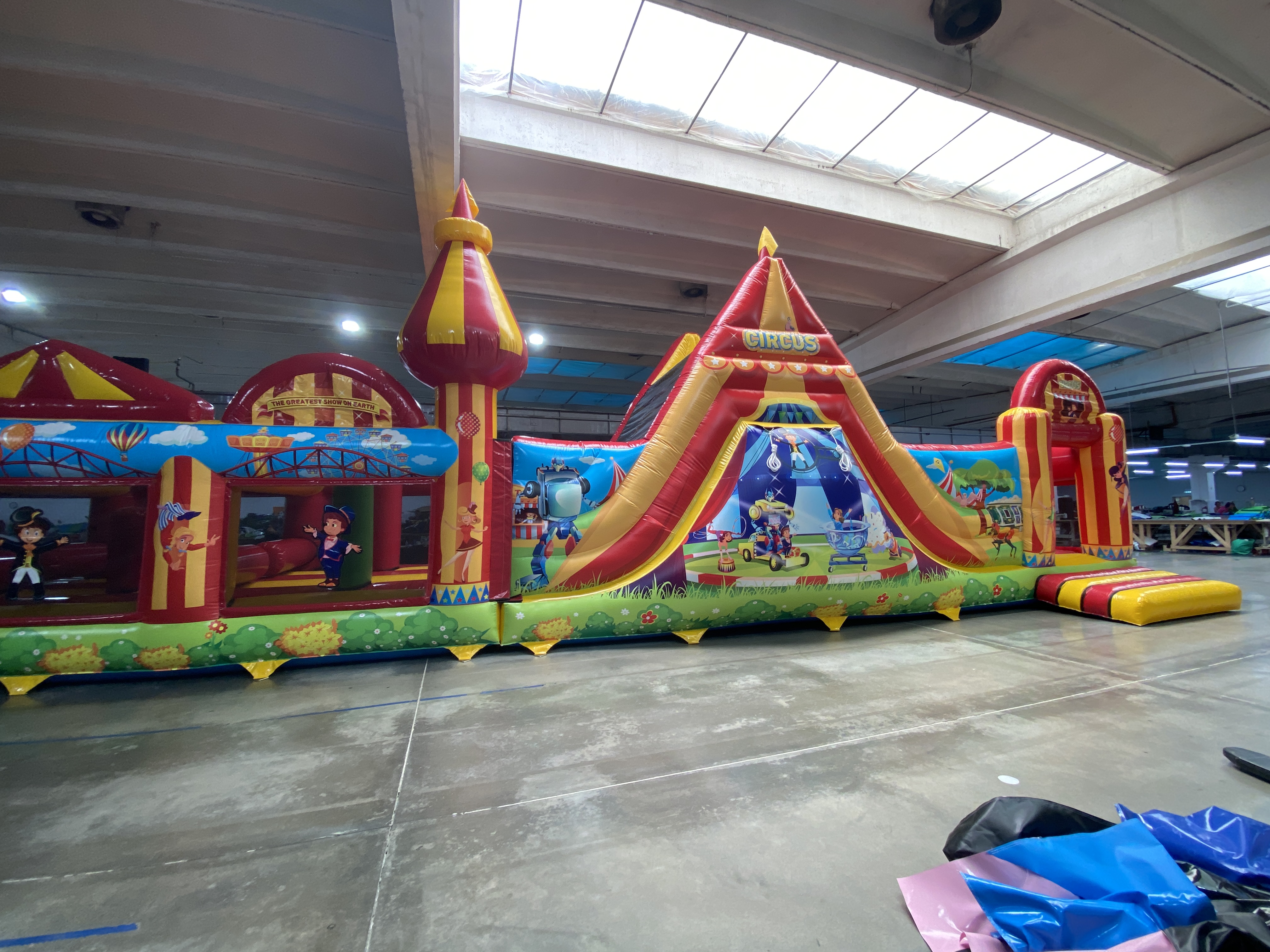 This is an impressive Circus themed fun run, incorporating biff and bash, plank walkway, squeeze rollers and more. This eye-catching inflatable measures a whopping 33 metres in length and has a slide via the exit, an amazing centre piece for your event. Suitable for children up to 12, with adults accompanying young children.