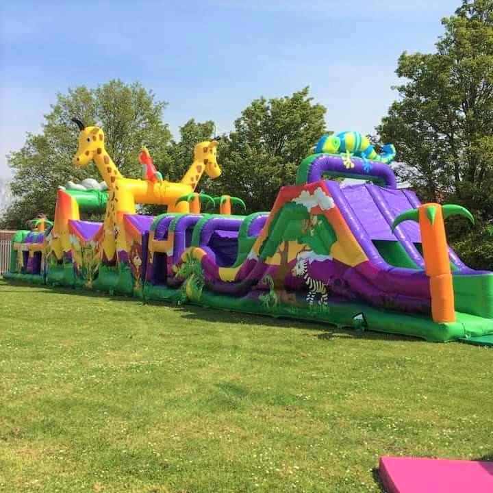 An impressive jungle themed fun run, incorporating biff and bash, rope swings, log walks, squeeze rollers and much more. This eye catching inflatable measures a whopping 33 metres in length and exits via long twin slides, an amazing centre piece for your event.