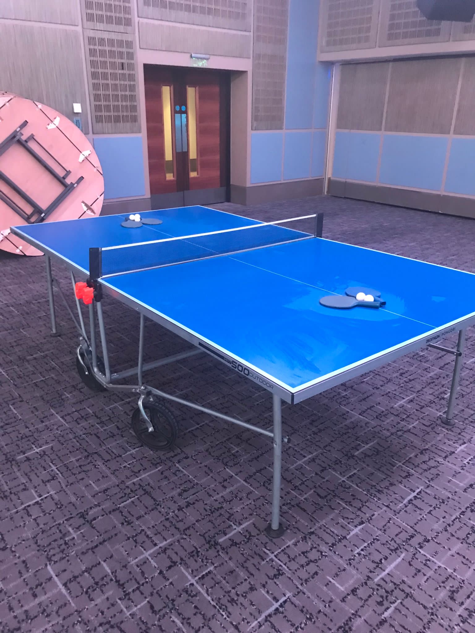 The Table Tennis Table is a competition size table, which is fully portable and comes complete with bats and balls.